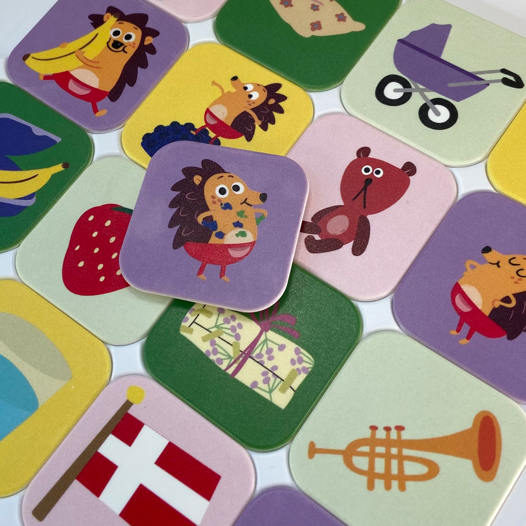 Spillet styrker ordforråd, sprog og udtale, når børnene finder de brikker, der hører sammen.