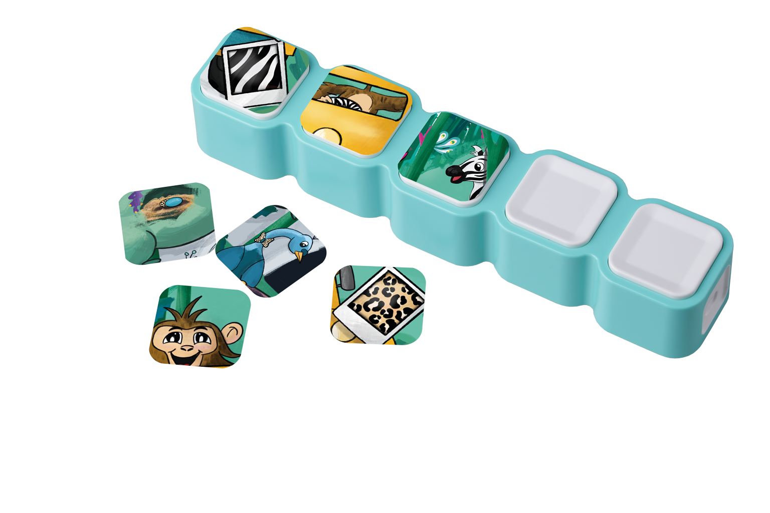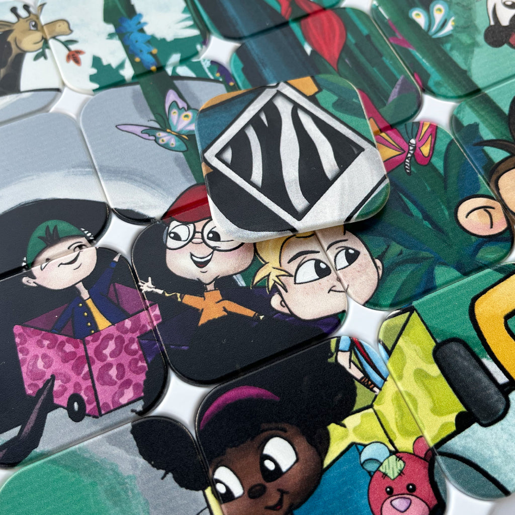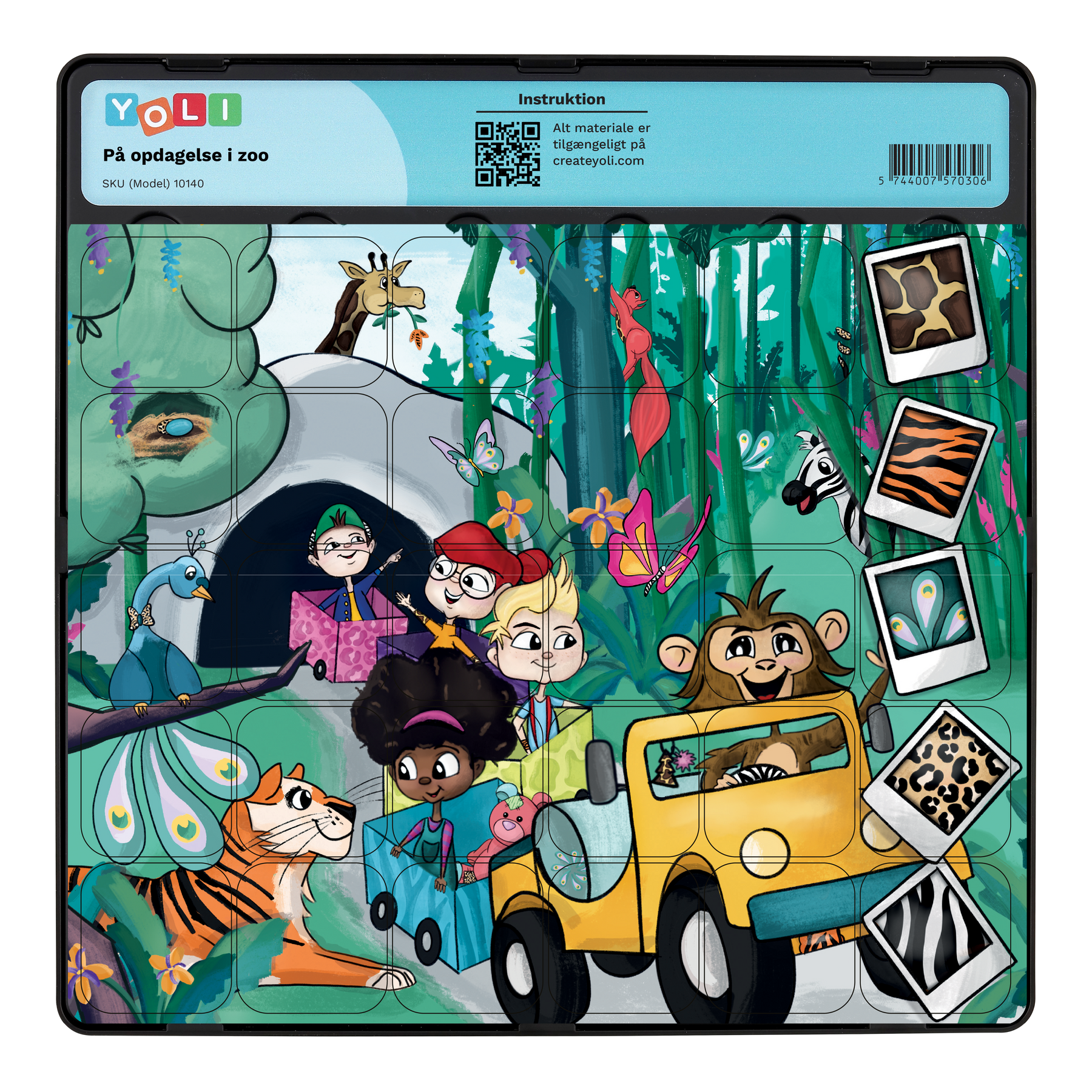 Kan du finde zebraens striber, tigermønsteret eller påfuglens smukke fjer? I På opdagelse i zoo træner børnene overblik og mønstergenkendelse, når de sammen opdager, hvilke brikker der hører til samme dyr.